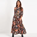 Aachoae Floral Print Long Maxi Dress Women Casual Turn Down Collar Shirt Dress Three Quarter Sleeve Bohemian Sashes Dresses