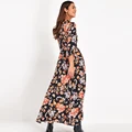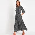 Special Offer Vintage Floral Print Maxi Dress Women Boho Three Quarter Sleeve Long Sashes Dress Turn Down Collar with FREE Shipping Worldwide!