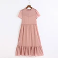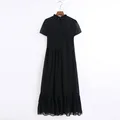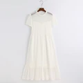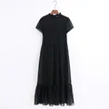 Women Long Dress Spring 2020 New Fashion Flocking Polka Dot Short Sleeve Transparent Material Moder