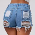 Hzirip Sexy Summer Women Denim Shorts 2019 New Black Blue High Waist Ripped Short Jeans Femme Tassel Lace Up Bandage Hotpants