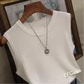 Knitted Vests Women Top O-neck Solid Tank Fashion Female Sleeveless Casual Thin Tops 2020 Summer Kn