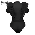 Rosetic Black Jumpsuits For Women Gothic Combinaison Femme Sexy Body Women One Piece Mesh Bodysuit
