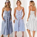 Special Offer Sexy Party Boho Sundress Women Summer Dress 2020 Casual Backless Midi Dress Button Polka Dot Stripe with Free Shipping Worldwide!