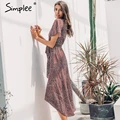Special Price Simplee Leopard print dress women Summer sashes long green split floral print beach dress Sexy holi with Free Shipping Worldwide!