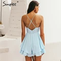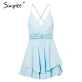 Simplee Sexy v-neck women playsuit Hollow out waist spaghetti strap ladies jumpsuit romper Summer b