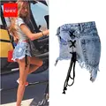 Women Emerald Denim Shorts High Waist Straps Tassel Bandages Denim Shorts Female Summer Jeans Short #68