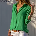 Women White Blouses Basic Selling Button Solid 2019 Autumn Long Sleeve Shirt Female Chiffon Women's