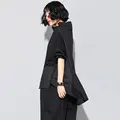 XITAO Harajuku Patchwork Pocket T Shirt Women Stand Collar Plus Size Casual Black Streetwear Female