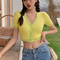 Discount Offer Cropped Cardigan Knitted V Neck Sweater Women Kawaii Cardigan Crop Top Ladies Streetwear Korean But with Free Worldwide Shipping!