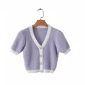 Cropped Cardigan Knitted V Neck Sweater Women Kawaii Cardigan Crop Top Ladies Streetwear Korean But