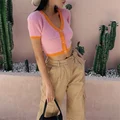 Knitted Sweater Women Long Sleeve Cropped Cardigan Korean Cute Cardigan Streetwear Ladies Button Up V Neck Pink Sweater 2020