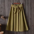 Elegant Women Pleated Skirt Big Bow High Waist Knee Length A Line Skirt Vintage Red Black Side Zipp
