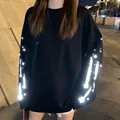 Hoody Women Fashion Reflective Round Collar Long-sleeved Print Female Sweatshirt Casual Loose bf La