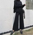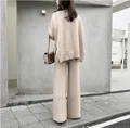 Knitting Female Sweater Pantsuit For Women Two Piece Set Knitted Pullover V-neck Long SleeveTop Wid