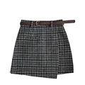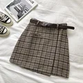 Korean Irregular Lady Skirt Female Autumn Sweet High Waist A-line Mini Skirt Vintage Casual Women Plaid Skirt Chic Sashes