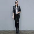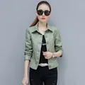 Leather Coat Women 2019 New Spring Autumn Korean Short Slim Black Green Orange XL 3XL 4XL Plus Size Long Sleeve PU Jacket LD1074