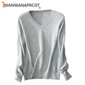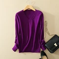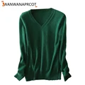 Sweater V-Neck Women Fashion Autumn Cashmere Wool Knit Sweater V-Neck Solid Slim Sexy Pullovers Coa