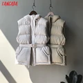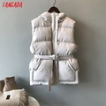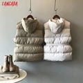 Tangada Women Solid Sleeveless Parkas With Slashes Hooded Zipper 2019 Winter Female Warm Long Coat