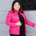 Female Coat Jacket Light Ultra-thin Style 2019 Autumn Winter Womens Slim Short Overcoat Duck Down Filler Stand Collar Plus S-7XL